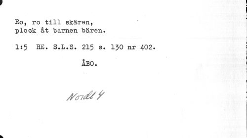 //// ¦ //// Ho, ro till skären, plock åt barnen bären. //// 1:5 RE. S.L.S. 215 s. 130 nr 402. i //// t-B //// ÅBO. [ //// Afoid/ f \ ////