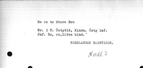 //// Ro ro te Store Bro //// i., • •• ... . ... //// Nr. 3 T. Östgtld, Kinda. Östg lmf. Jmf. Ro, ro,liten kind.' //// NORDLANDER BARNVISOR. //// • fiadJl ////