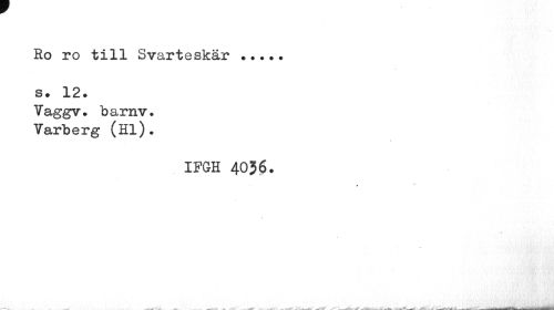 //// Ro ro till Svarteskär s » 12» //// Vaggv. barnv. Varberg (Hl). //// IFGH 40J6. //// * //// 1 //// -...— - c il* ___III I 1—frÉ ////