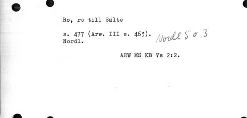 //// Ro, ro till Sälte //// S.J77 (Ar.. III s. 463). ^ f, .3 //// ARW MS KB Vs 2:2. //// / ////