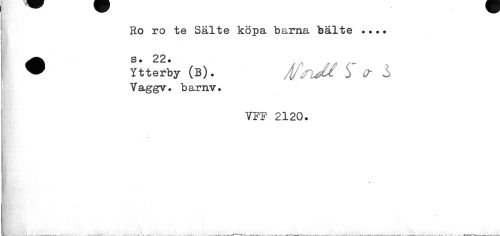 //// Ro ro te Sälte köpa barna bälte •.. ? //// • s. 22. //// Ytterby (B). /l/flM- (T i Vaggv. barnv. //// VFF 2120. ////