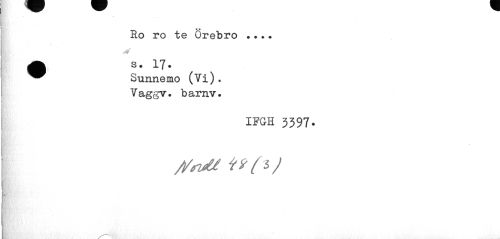 //// Ro ro te Örebro ... //// ^^ Sunnemo (Vi). //// Vaggv. barnv. //// IFGH 3397. //// / ////