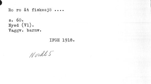 //// Ro ro åt fiskesjö ... //// 8. 60. Nyed (Vi). //// Vaggv. barnv. //// • • //// IFGH 1918. //// tftfldl f ////