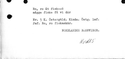 //// Ro, ro åt fiskesö mågge fiske få vi där //// ^^ Nr. 5 K. Östergtld. Kinda. Östg. Imf. //// Jmf. Ro, ro fiskaskär. //// NORDLANDER BARNVISOR. //// ^^USwwiliJV <Mt -i i v //// Ml'. ////