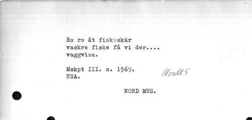//// Ro ro åt fiskaskär //// vackre fiske få vi der... //// vaggvisa. //// Mskpt ill. s. 1569. //// U oÅ# //// ^ NORD MUS. ////
