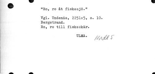 //// ^^ "Ro, ro åt fiskesjö.11 //// Vgl. Undenäs, 2251:5, s. 10. Bergstrand. //// Ro, ro till fiskeskär. //// ulma- /i/sidt r ////