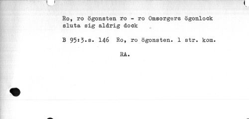 //// Ro, ro ögonsten ro - ro Omsorgers ögonlock sluta sig aldrig dock //// B 95?3*s. 146 Ro, ro ögonsten. 1 str. kom. //// RA. ////