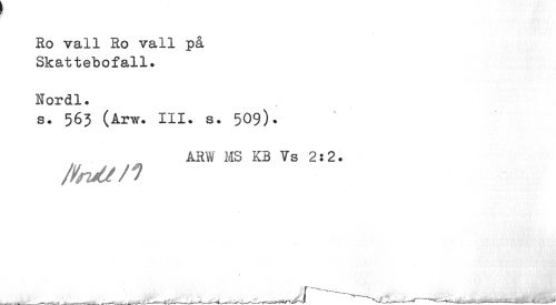 //// Ro vall Ro vall på Skattebofall. //// Nordl. //// s. 563 (Arw. III. s. 509). //// ARW MS KB Vs 2:2. //// /VnjU/1 //// :f ^ ^ .; r . . i nr. ' — - ur, ////
