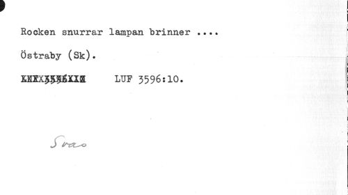//// i //// I //// r //// Rocken snurrar lampan brinner ... ? //// : //// : j //// Östraby (Sk). j //// LUF 3596:10. | //// i //// i //// } //// j ////