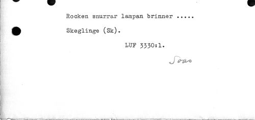 //// Rocken snurrar lampan brinner .?..• ^ Skeglinge (Sk). //// LUF 3330:1. //// J tm^ ////