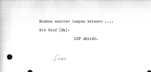 //// Rocken snurrar lampan brinner ... S:t Olof (Sk). //// LUF 482:60. ////