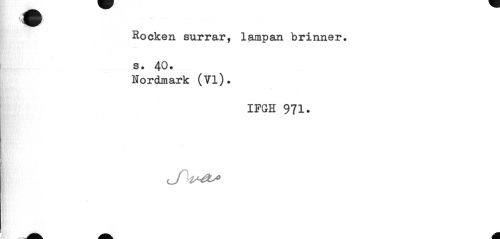 //// Rocken surrar, lampan brinner, s. 40. //// Nordmark (Vi). //// IFGH 971. //// ^ ^ M ////