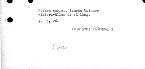 //// Rocken surrar, lampan brinner vinterkvällen är så lång. //// ? s. 25, 26. //// IFGH 5784 KLÖVEDAL B. //// O w&o //// ii?' 'f ////