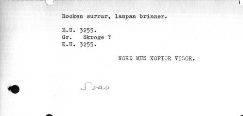 //// Rocken surrar, lampan brinner. //// E.U. 3255. Gr. Skroge ? //// E.U. 3255. //// NORD MUS KOPIOR VISOR. //// ) ////