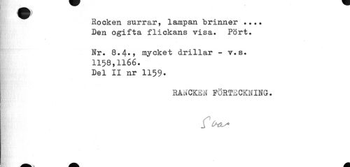 //// • Rocken surrar, lampan brinner ... //// Den ogifta flickans visa. Pört. //// Nr. 8.4»» mycket drillar - v.s. 1158,1166. Del II nr II59. //// RAtfCKEN FÖRTECKNING. //// £ (Ml" //// ¦ //// Ä A ^ ////