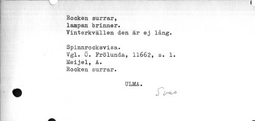 //// Socken surrar, lampan brinner. Vinterkvällen den är ej lång. //// Spinnrocksvisa. //// Vgl. ö. Frölunda, 11662, s. 1. Meijel, A. Rocken surrar. //// ULMA. ////