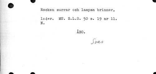 //// Rocken surrar och lampan brinner, //// ls4+r. MU. S.L.S. 50 s. 19 nr 11. N. //// ÅBO. //// t ////