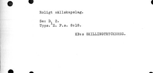 //// Roligt sällskapslag. Se: D 2. //// Upps. Z. P.s. 8:18. //// KBss SKILLINGTRYCKSREG. ////