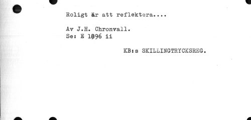 //// Roligt är att reflektera... //// Av J.H. Chronvall. Se: E 1896 ii //// KB:s SKILLINGTRYCKSREG. //// % ////