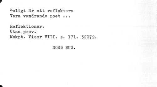 //// ^oligt är att reflektera Vara vandrande poet •. • //// Reflektioner. Utan prov. //// Mskpt. Visor VIII. s. 171. 32072. //// i //// NORD MUS. //// k ////