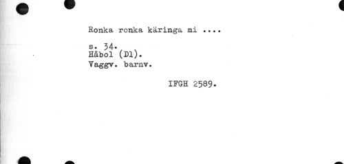 //// Ronka ronka käringa mi •... //// s. 34* Håbol (Dl). //// Vaggv. barnv. //// IFG-H 2589. ////
