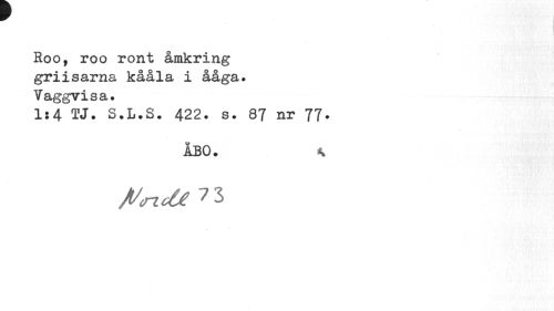 //// Roo, roo ront åmkring gr i isarna kååla i ååga. Vaggvisa. //// 1:4 TJ. S.L.S. 422. s. 87 nr 77. //// ÅBO. K //// Ji/<nc6e 73 ////