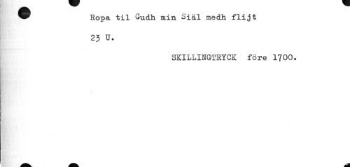 //// ^^ Ropa til Gudh min Siäl medh flijt //// 23 U. //// SKILLINGTRYCK före 1700. //// # ////