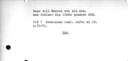 //// Ropa till Herren uti din nöd, han frälser dig ifrån syndens död. //// 7:6 ? Svenssons saml. häfte nr 29 • //// s.70-71. //// ABO. //// / ////