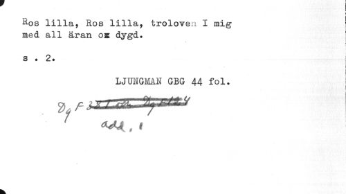 //// i //// } //// Ros lilla, Ros lilla, troloven I mig med all äran os dygd. //// s . 2. , //// LJUNGMAN GBG 44 fol. //// ! //// ^ i ! //// •r //// k ////