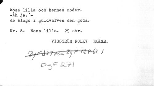 //// Rosa lilla och hennes moder. -Ah ja. //// de slogo i guldväfven den goda. Nr. 8. Rosa lilla. 29 str. //// VIGSTRÖM FOLKV SKÅNE. //// J //// O ^ å-Li*! ////