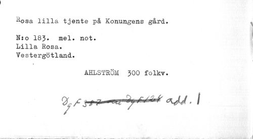 //// Rosa lilla tjente på Konungens gård. //// N:o I83. mel. not. Lilla Rosa. Vestergötland. //// 1 //// » //// AHLSTRÖM 300 folkv. ////