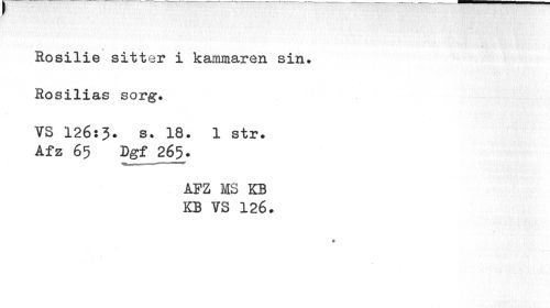 //// Rosilie sitter i kammaren sin. Rosilias sorg. //// VS 126:3. s. 18. 1 str. Afz 65 Dgf 265. //// ÅFZ MS KB KB VS 126. ////