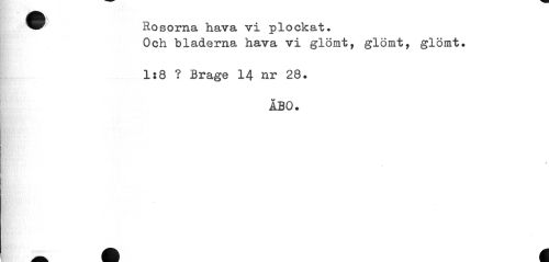 //// Rosorna hava vi plockat. //// Och bladerna hava vi glömt, glömt, glömt. 1:8 ? Brage 14 nr 28. //// ÅBO. //// » ////