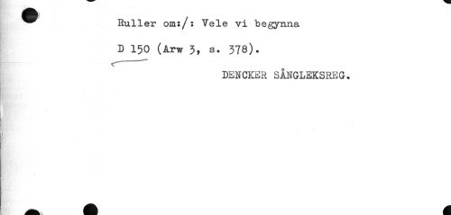 //// ^^ Ruller om:/: Vele vi begynna //// D 150 (Arw 3, s. 378). //// DENCKER SÅNGLEKSREG. //// t*' • ////