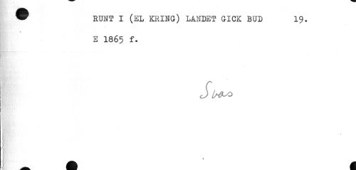//// ® RUNT I (EL KRING) LANDET GICK BUD 19. //// * //// % //// E 1865 f. //// i /> //// J ItfUO //// > //// k //// | * ////