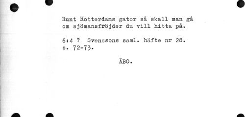 //// Runt Rotterdams gator så skall man gå om sjömansfröjder du vill hitta på» //// 6:4 ? Svenssons saml. häfte nr 28. //// s. 72-73- //// ÅBO. ////