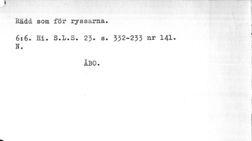 //// Rädd som för ryssarna. //// p //// ! //// 6:6. Hi. S.L.S. 23. s. 332-233 nr 141. ! //// N. //// i //// ; //// ÅBO. //// f > //// « * //// | //// I //// I ////