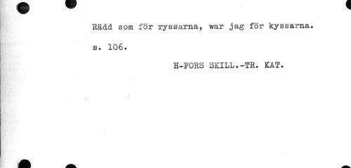 //// Rädd som för ryssarna, war jag för kyssarna, s. 106. //// H-FORS SKILL.-TR. KAT. //// \ ////