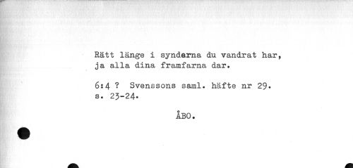 //// Rätt länge i synderna du vandrat har, ja alla dina framfarna dar. //// 6:4 ? Svenssons saml. häfte nr 29* s. 23-24* //// ABO. ////