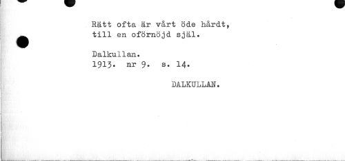 //// Rätt ofta är vårt öde hårdt, ^^ till en oförnöjd själ. //// Dalkullan. //// 1913* nr 9. s. 14. //// DALKULLAN. ////