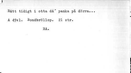 //// Rätt tidigt i otta dä' panka på dörra..• A 49*1- Rondbröllop. 21 str. //// RA. //// < i //// \ //// i ¦ //// i //// | //// ¦ ////
