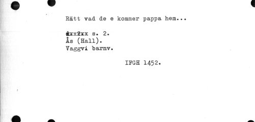 //// t //// Rätt vad de e kommer pappa hem... //// 4xx2xx s • 2. Is (Hall). Vaggvi barnv. //// IFGH 1452. //// \ ////