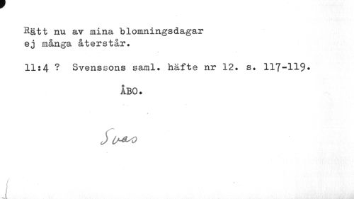 //// Rätt nu av mina blomningsdagar ej många återstår. //// 11:4 ? Svenssons saml. häfte nr 12. s. 117-H9* //// ÅBO. //// * //// J U-^o //// I ////
