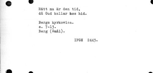 //// Rätt nu är den tid, då Gud kallar hss hid. //// Bergs kyrkovisa. //// s. 7-13. Berg (Smål). //// ifgh 2443. ////