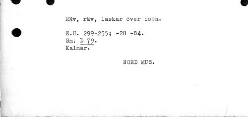 //// \ //// Räv, räv, laskar över isen. //// ^ E.U. 299-255? -28 -84. //// Sm; D 79. //// Kalmar. //// NORD MUS. ////