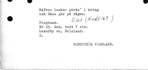 //// Räfven lankar gärda' i kring och Gåsa går på rågen. //// • Hingdaa, b»* //// Nr 25. End. text 7 str. Laxarby sn, Dalsland. D. //// BORGSTRÖM VÄRMLAND. //// • ''-i //// K, . j %. ////