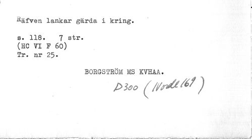 //// p //// ^äfven lankar gärda i kring, //// r //// s. 118. 7 str. (HC VI F 60) Tr. nr 25. //// BORGSTRÖM MS KVHAA. //// Ploo f) //// 1 1 ////