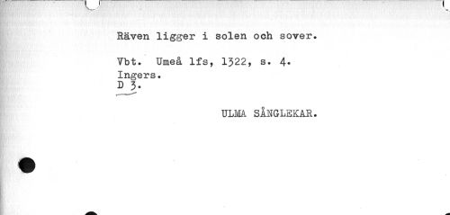 //// Räven ligger i solen och sover. //// Ybt. Umeå lfs, 1322, s. 4. Ingers. //// D 3- //// ULMA. SÅIGLSKÅR. ////