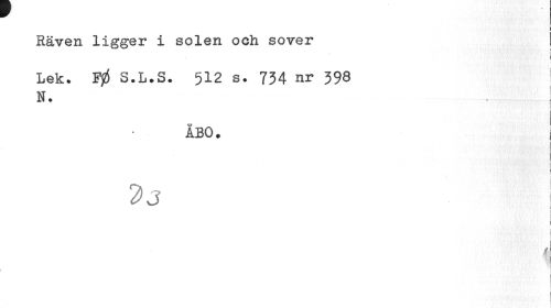 //// W | //// Räven ligger i solen och sover //// k //// I //// Lek. F0 S.L.S. 512 s. 734 nr 398 | //// N. //// ÅBO. I //// ! i //// i ////