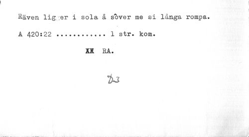 //// I //// Räven lig jer i sola å sover me si långa rompa. i //// A 420:22 ... 1 str. kom. //// XX EA. ////